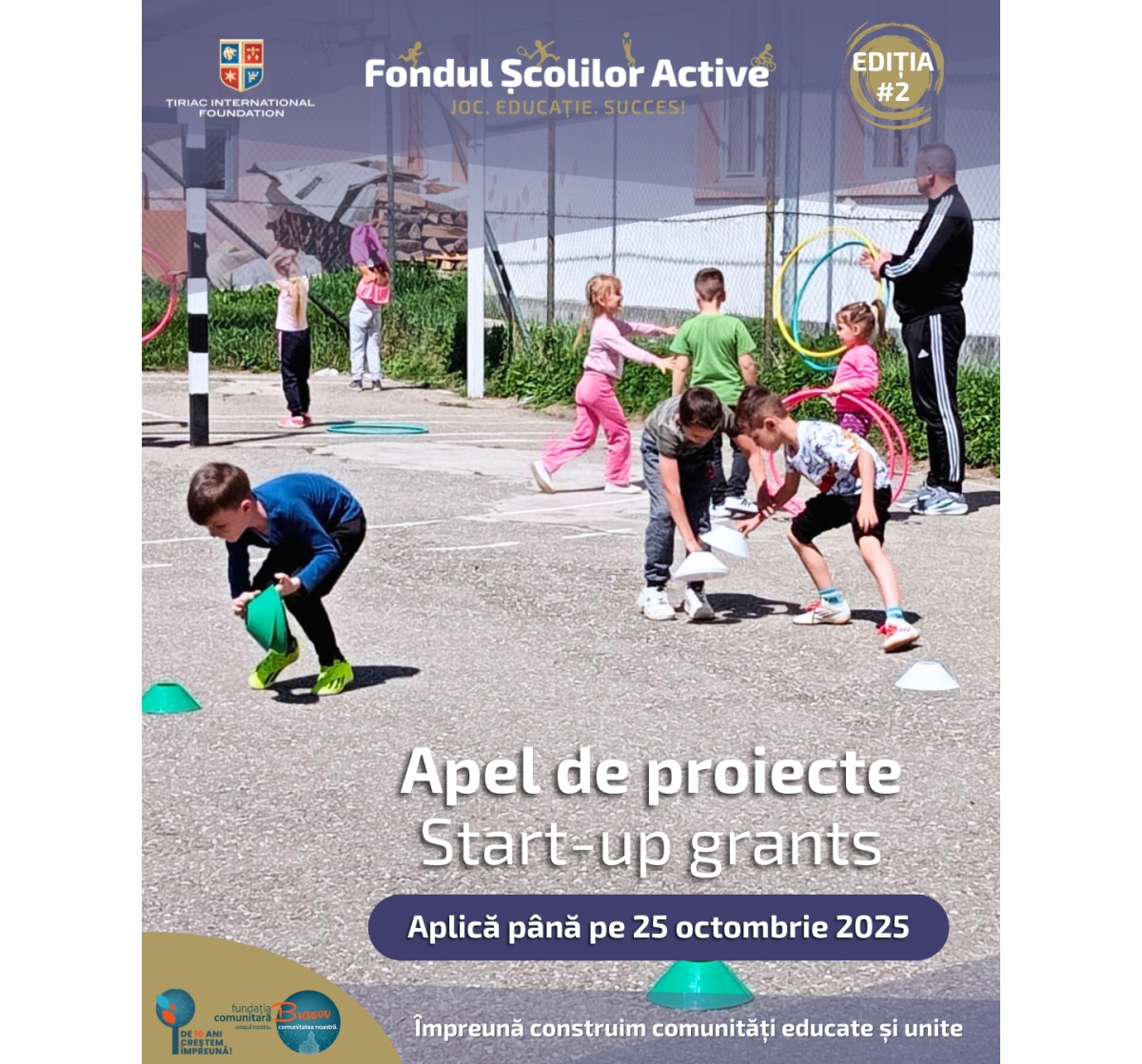 Fundația Comunitară Brașov în parteneriat cu Țiriac International Foundation lansează a doua ediție a pilonului Start Up din cadrul programului Fondul Școlilor Active.