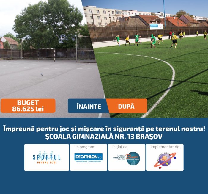 Programul a fost finanțat de către Decathlon România și inițiat de Fundația Comunitară Brașov în perioada 2021-2023. A treia ediție a avut loc în anul 2023 și a avut ca scop îmbunătățirea condițiilor de sport în școlile din afara municipiului Brașov și a zonei Țara Făgărașului prin renovarea și amenajarea terenurilor sau a sălilor de sport, astfel încât cât mai mulți copii să aibă posibilitatea de a face sport în condiții optime și cu plăcere.